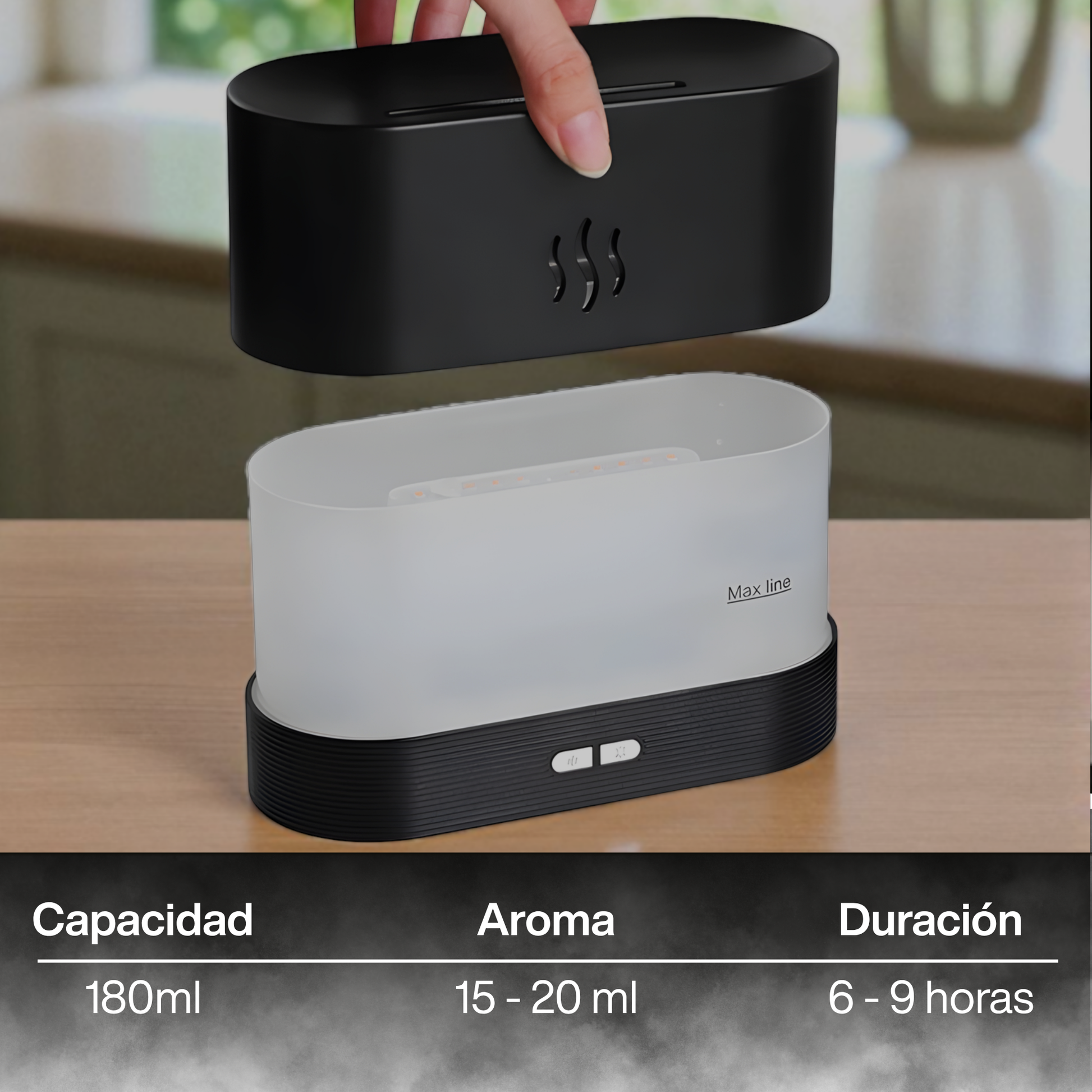 Su innovador efecto de llama combina vapor y luz para crear una atmósfera hipnótica que te invita a desconectar después de un día lleno de estrés.